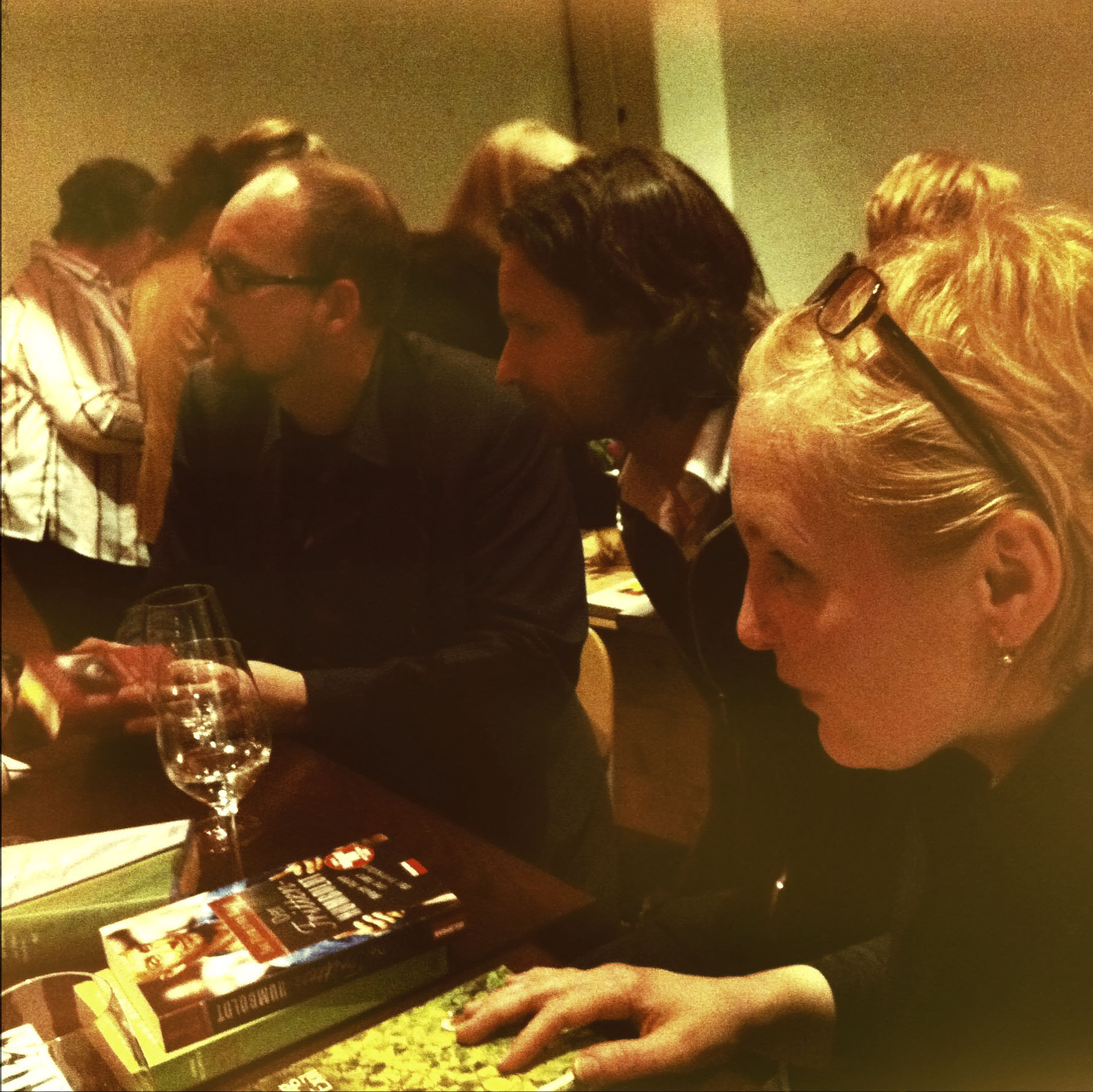 Die Regi­on jen­seits der gro­ßen Auto­bahn ist ähn­lich weit ent­fernt für den Kern­ham­bur­ger wie die Gebie­te süd­lich der Elbe. An der gro­ßen Stra­ße, die gen Wes­ten führt, liegt einer die­ser hüb­schen Mehr­zweck­bau­ten, die schuh­kar­ton­ar­tig in jedes länd­li­che Gewer­be­ge­biet pas­sen wür­den. Die­ser hier birgt einen Büro­markt und eine Filia­le eines Ham­bur­ger Wein­händ­lers. In der Lager­hal­le riecht es ein wenig nach Wein, sicher­lich ist schon die eine oder ande­re Flüs­sig­keit im Est­rich ver­si­ckert. Auf einer Empo­re über der Hal­le ist lose korb­be­stuhlt und die Tische ein­ge­deckt, es wer­den Wei­ne gereicht zum Salon der Lese­ta­ge. Die Autoren Moritz Rin­ke und Mat­thi­as Göritz sowie Bar­ba­ra Hei­ne, seit neun Jah­ren Pro­gramm­lei­te­rin des Fes­ti­vals sind umge­ben von Büchern und wol­len Autoren und Schwer­punk­te aktu­el­ler Neu­erschei­nun­gen und ein­zel­ne Gäs­te der fol­gen­den acht Fes­ti­val­ta­ge vor­stel­len. Sowas kann schnell in Pres­se­kon­fe­renz­at­mo­sphä­re aus­ar­ten, à la »fer­ner hät­ten wir noch xyz im Pro­gramm« – das Trio auf drei Bar­ho­ckern plau­dert aller­dings ziem­lich mun­ter über das, was sie an Lite­ra­tur inter­es­siert und ande­re inter­es­sie­ren kann.