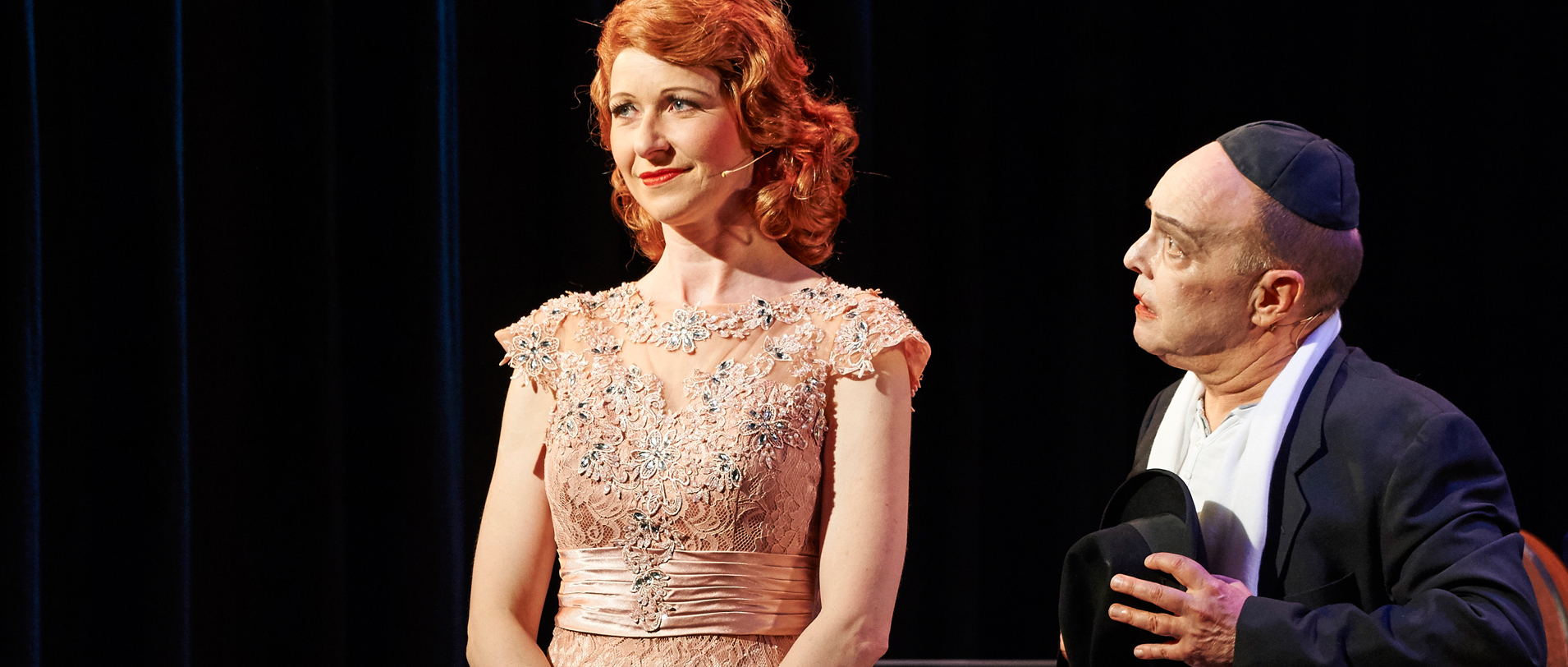 Das Stück erzählt die Geschich­te einer auf­stre­ben­den jüdi­schen Sän­ge­rin in den 30er und 40er Jah­ren. Es gibt eine sehr spär­li­che Rah­men­hand­lung, die die ein­zel­nen Num­mern, über 20 an der Zahl ver­bin­det, und, ganz wie es sich für die Gat­tung Musi­cal gebie­tet, den jewei­li­gen Zustand der Prot­ago­nis­tin illus­trie­ren. Das geht von den Erwar­tungs­hal­tun­gen der Debü­tan­tin – »Im Thea­ter ist was los« – über die Ver­zweif­lung und Ent­täu­schung der Ver­trie­be­nen in »Weder noch« bis hin zum gla­mou­rö­sen »Der zweit­äl­tes­te Beruf der Welt« mit solch bezau­bernd-gro­tes­ken Zei­len wie »Vorm Schla­fen­gehn tei­len wir Län­der – und ändern die Rän­der«. Dar­in steckt tat­säch­lich so etwas wie Revue, Glanz und Inner­lich­keit, und das macht Yvonne Dis­qué ganz fabel­haft und mit viel Prä­senz, die Erfah­rung bei grö­ße­ren Pro­duk­tio­nen wie »Hei­ße Ecke« und »Swin­ging St. Pau­li« ist der Rolf-Mares-Preis­trä­ge­rin von 2011 deut­lich anzu­mer­ken. Da sitzt jede Num­mer, die Spiel­freu­de ist ihr anzu­se­hen – das allein genüg­te für einen gelun­ge­nen Abend, der ohne­hin in sei­ner doch lan­gen Anein­an­der­rei­hung von Songs einer Num­mern­re­vue näher ist als einem durch­er­zähl­ten Stück – doch das liegt in der Vor­la­ge Kreis­lers begründet